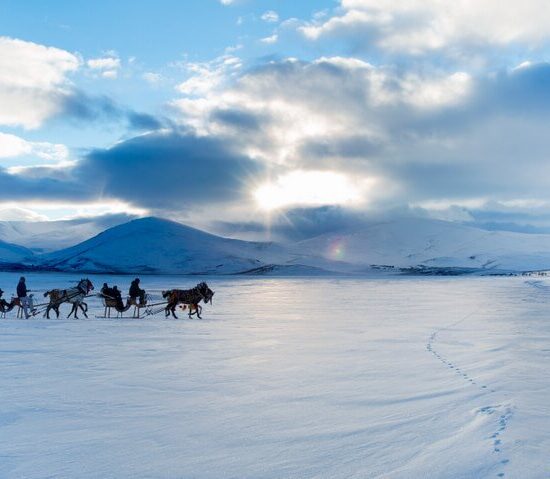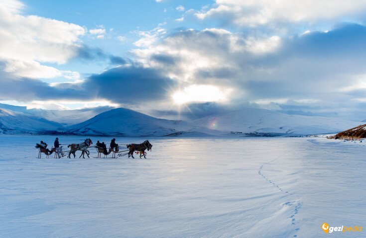 - Göl kenarında öğle yemeğimizi alıyoruz. Burada hava şartlarına göre, göl üzerinde atlı kızakla gezinti yapma, buz içerisinde balık avlama imkanımız olacak.